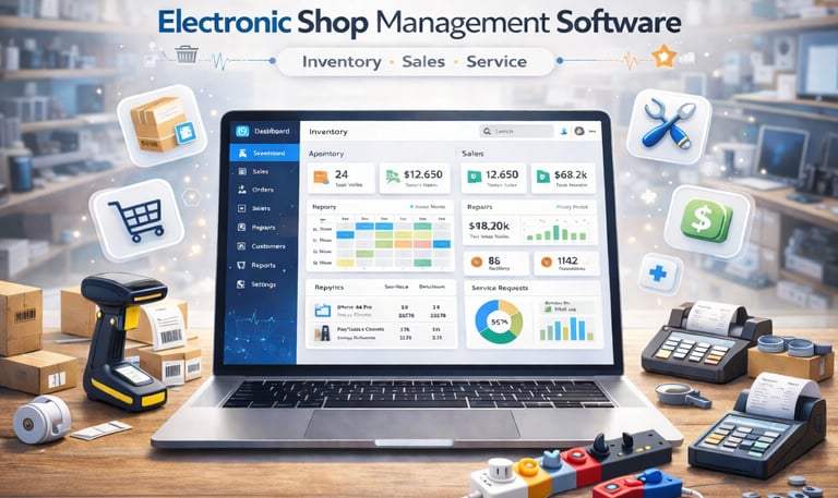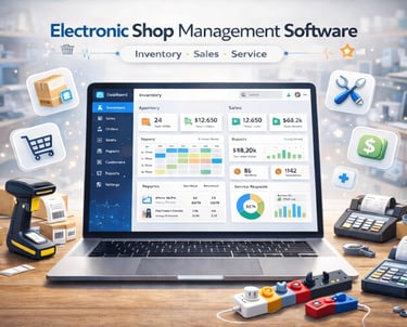Power up your electronics business with a smart and efficient management solution designed for modern retail stores. From inventory tracking and barcode billing to warranty management, supplier handling, and real-time sales reports — manage your entire electronic shop seamlessly from one secure and integrated platform.