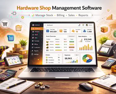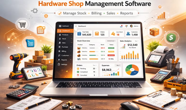 Simplify your hardware business with a powerful and reliable management solution. From inventory tracking and supplier management to billing, GST invoicing, and real-time sales reports — manage your entire hardware store efficiently from one secure and integrated platform.