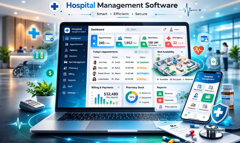 Enhance your healthcare operations with a smart and reliable hospital management solution. From patient registration and appointment scheduling to electronic medical records, billing, and detailed performance reports — everything you need to manage your hospital efficiently in one secure and integrated platform.