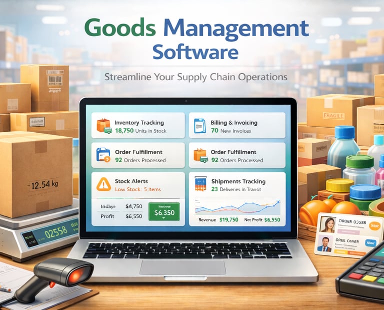 Optimize your goods handling and inventory operations with a smart and reliable management solution. From stock tracking and purchase management to billing, warehouse control, and real-time reports — manage your goods efficiently in one secure and integrated platform.